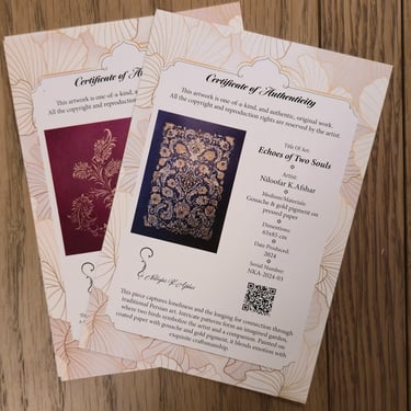 A refined, trustworthy certificate that enhances the presentation of my work and deepens the collector experience, reinforcing the value of both the artwork and its origin.