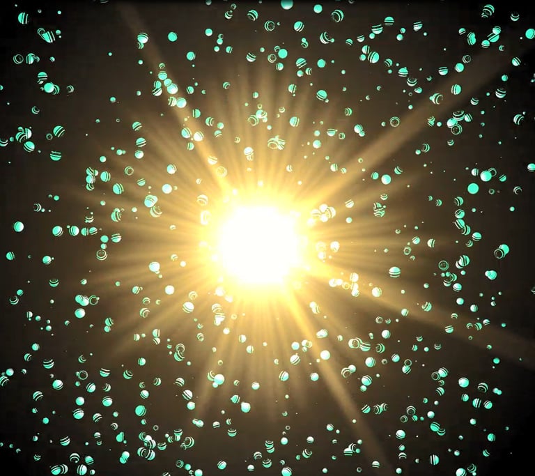 Explosion Physics: A simulated force blast sent hundreds of small balls into chaotic motion, demonstrating reaction timing, collision response, and gravity settings.