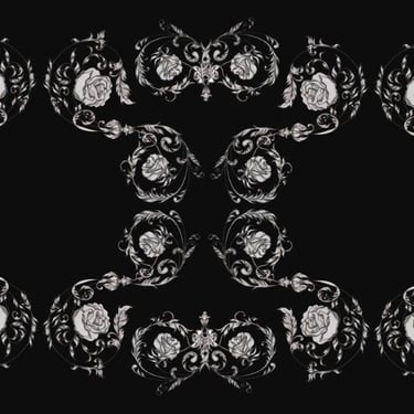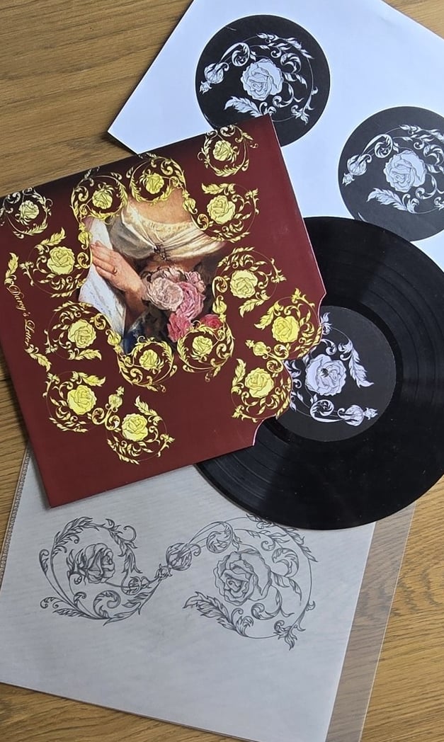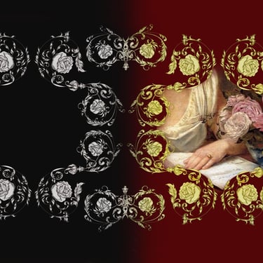Drawing from 18th-century aesthetics, I handcrafted a pattern that merges Victorian damask with Chinese ornamental motifs, a nod to the era’s global elegance and romantic ideals. Symbolic flourishes, including architectural details and floral forms, represent the quiet presence of love amidst social rigidity and arranged marriages.