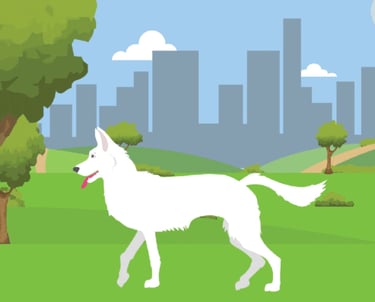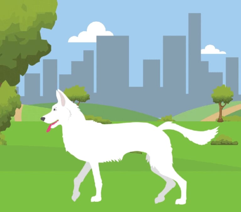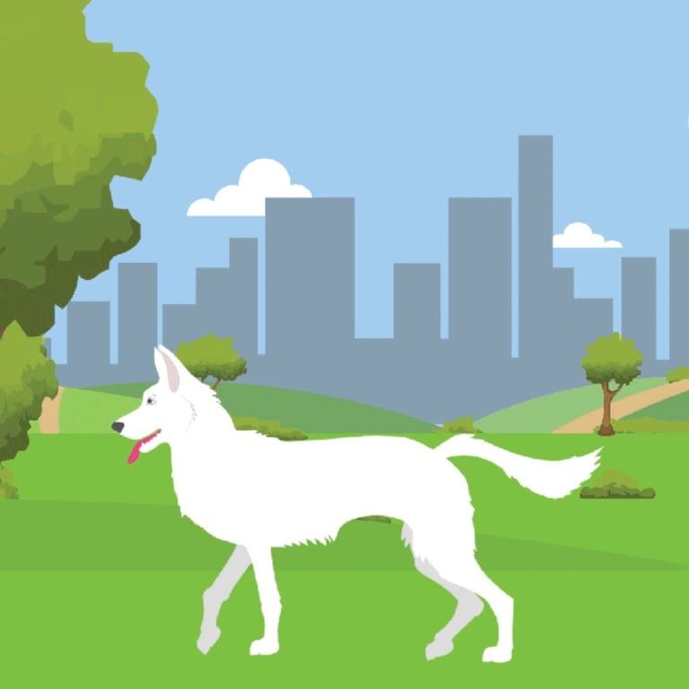 This animation brief required the creation of an original character and seamless loop GIF. I chose to design a dog character that could walk continuously through a layered environment.