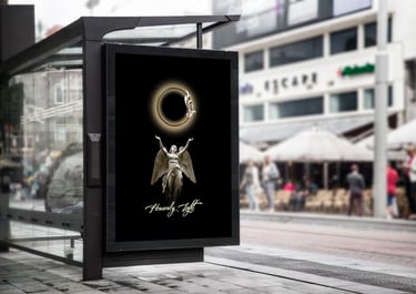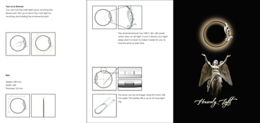 This university project focused on promoting Heavenly Light, a sculptural lighting concept designed to emit a soft, ambient glow from a halo-like ring above angelic forms. The challenge was to visually express both the product’s emotional aura and its functional presence through print design.