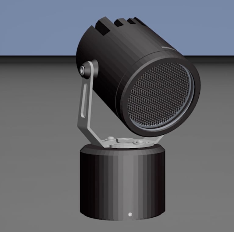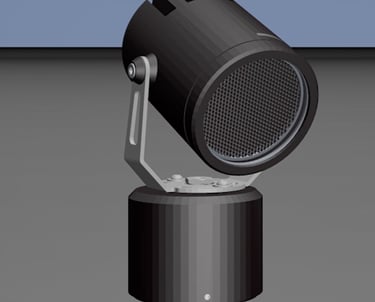 Using imported CAD data, I animated a full 360° rotation and 0–120° elevation sequence to illustrate its range of motion. The scene highlights how the fixture can wash walls and accentuate structures, with special attention to smooth articulation and clean locking visuals.