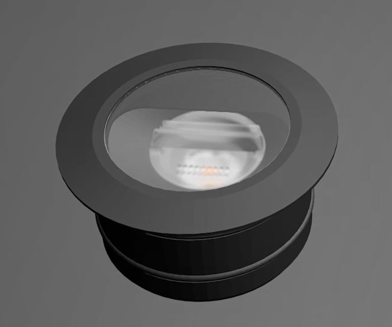 The animation focuses on the fixture’s 3mm profile, its walkable flange in copper/stainless steel, and how light is softly directed onto nearby surfaces. Using visual layering and subtle illumination, I demonstrated the asymmetric optics in a real-world lighting context.